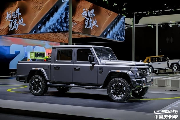 外形方面保留了212 T01的标志性的一拱、二圆、三横、四纵的设计语言,前部几乎和SUV版本一模一样。后部增加了货箱,并且前后是整体式设计,货箱与座舱并无断开。根据工信部信息显示,该车拥有42°接近角、26°离去角。除此以外,新消息显示该车还会拥有254mm的最小离地间隙以及850mm原厂涉水深度。之前工信部申报的2.3T柴油版本参数为140kW/500N·m;混动版将会是插电混动的形式,并且与燃油版一致,都会匹配采埃孚8AT变速箱。该车原厂还具备3吨拖挂资质,尾箱配备锚点导轨系统和220V电源接口,搭配80L大油箱,续航里程将会非常不错。