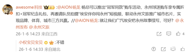 网友纷纷为这一主动接力的姿态点赞,并对“续写”的具体形式展开想象:有人认为可能会延续“送车”承诺,毕竟这是汽车企业的天然优势;也有人推测或将通过赞助等形式支持球队发展,这与埃安长期投入体育事业的形象相符;亦有人期待为球员提供更具意义的成长支持。尽管形式尚未明确,但公众普遍认为埃安的善意接力,或将给故事一个合家欢结局。