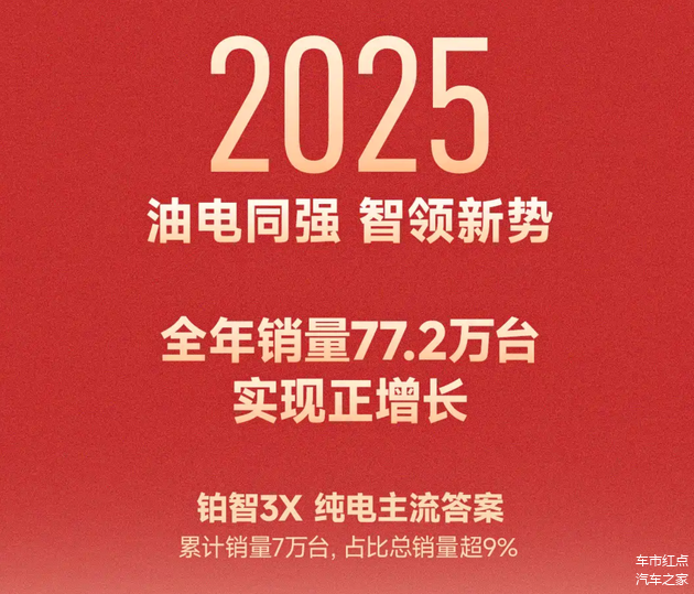 广汽丰田全年销量77.2万台,实现同比正增长,其新能源车型铂智3X累计销量超7万台,成为重要增长点。