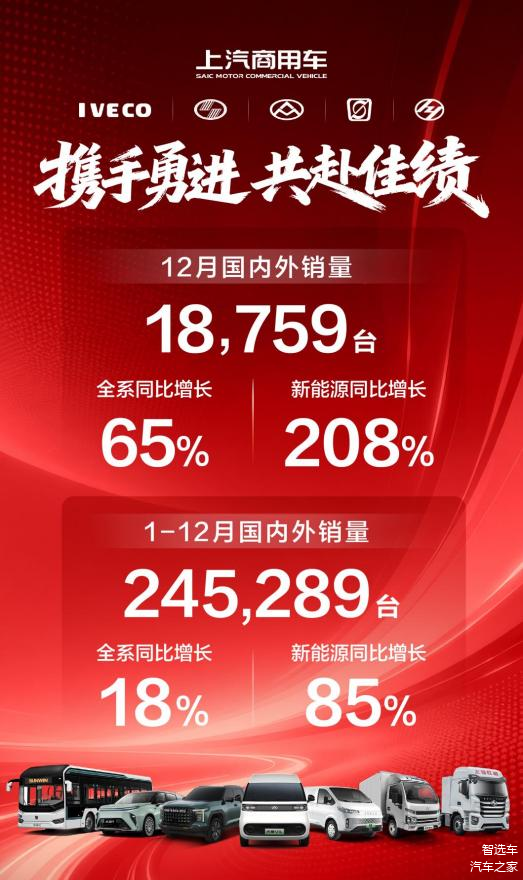 2025年,上汽商用车以领先一众传统商用车企的新能源转型成果,完成了传统商用车企转型的关键跨越。未来,随着更多新能源车型落地与五年销量翻番战略的推进,其将向轻商“国内轻客第一、国内新能源轻商第一、轻商出口第一”的目标持续迈进,引领行业加速驶向绿色、智能、全球化的新征程。