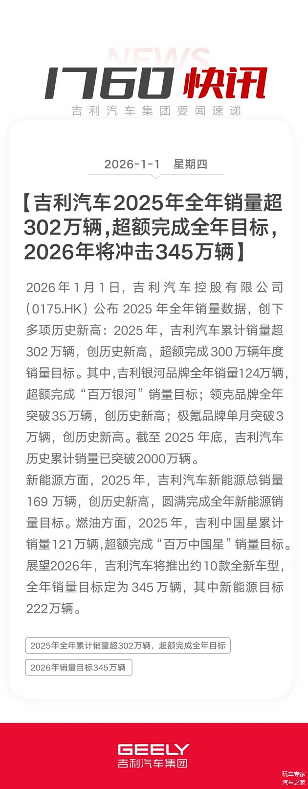 吉利的目标拆解清晰,新能源板块将承担222万辆销量,渗透率目标提升至 64.3%,贴合新能源仍是产业增长核心动力的趋势。