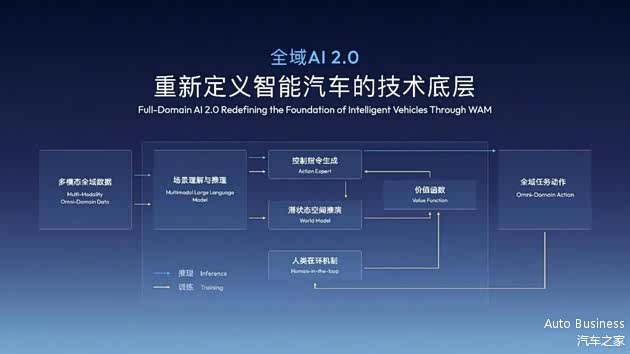 而全域AI 2.0的核心使命,是构建一个统一的“整车大脑”,实现智驾域、座舱域、底盘域、动力域等跨越的感知、数据、信息共享。