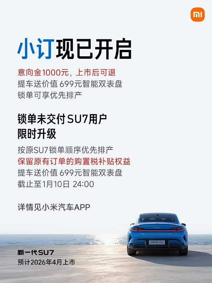 #小米SU7#将在4月上市,今天小订也同步开启了。 标准版22.99万,Pro版25.99万,Max版30.99万。不过这只是预售的价格,估计最终定价,很大可能会和上一代一样。尽管说很多地方做了升级,但价格这块的惊喜,还是会很小米的。 全系标配激光雷达,续航最高做到了902km,内饰的细节也有很多的升级。 已锁单未交付的车主可以限时升级,保留原有购置税补贴的权益。 后来SU7的交付加快了很多,最近刚锁单的用户,是选择尽早提车还是等升级呢,就要多等三个月了。