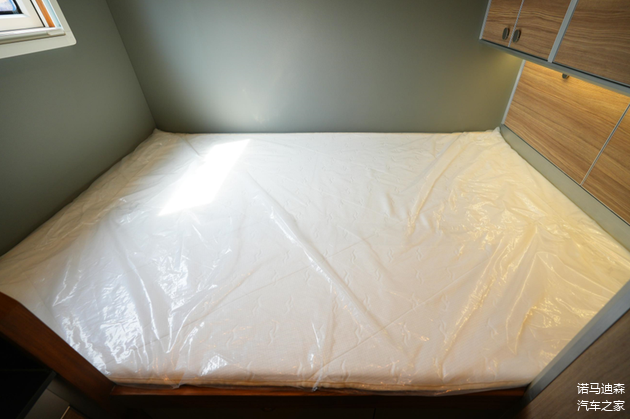 生活舱后部是一张双人床,尺寸为 1300mm×2000mm,同样配置了乳胶床垫,为旅行者打造了一个静谧舒适的私人休息区域。在这里,你可以在一天的奔波后,伴着窗外的虫鸣鸟叫,迅速进入甜美的梦乡。