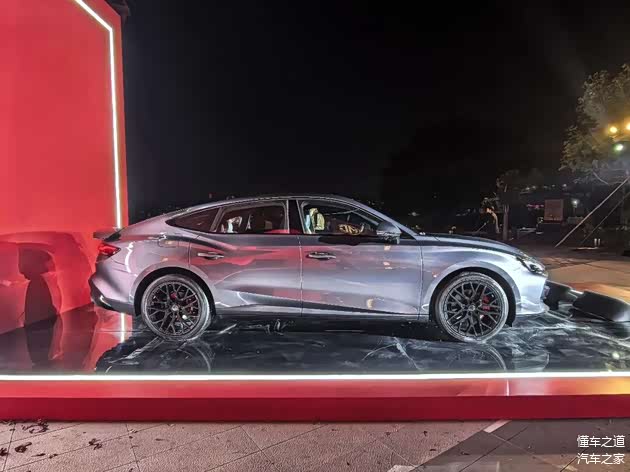 来到车身侧面,溜背造型,A柱就往后下溜,一直至车尾,豹跃肩线设计让新车拥有极为夸张的肌肉线条感,无框式车门,车身尺寸方面,新车的长宽高分别为4884/1889/1447mm,轴距为2778mm。2026款名爵MG7将标配19英寸轮圈和红色刹车卡钳,部分车型将配备炫黑多幅式轮圈,运动感更强烈。