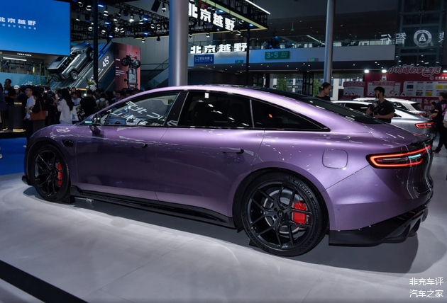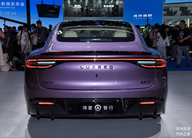 前脸那个大灯和熏黑进气口,显得很凶很猛,但总感觉少了点小米SU7那种一眼入魂的惊艳感。