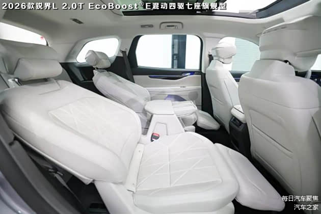 而且,2026款福特锐界L的二排座椅很舒适,靠背的包裹度和扶手位置设计的都很符合人体工程学,而且支持一键零重力模式,所以长途旅行也能很放松。