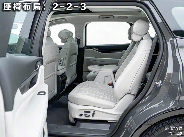 不过,笔者现在看的这款豪华型是2-2-3座椅布局。这种布局的优势在实际使用中尤为明显,平时一家三口或者四口出行,第三排可以收起来。春节全家出行,第二排两个独立座椅中间留有200mm宽的独立通道,老人和孩子进出第三排时也无需费力挪动座椅,直接从容通过,彻底告别了“爬进爬出”的尴尬。