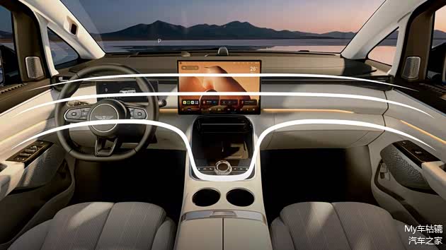 车内设计简洁,几乎是全靠用料彰显高级感,比如顶棚部分(Ultra版)使用意大利进口Alcantara麂皮材料。不过设计细节还是不少的,比如仪表台采用三层递进式结构,灵感来源于古典建筑阶梯,类似这样的中国文化元素不少,整体呈现出中国式豪华的调性。