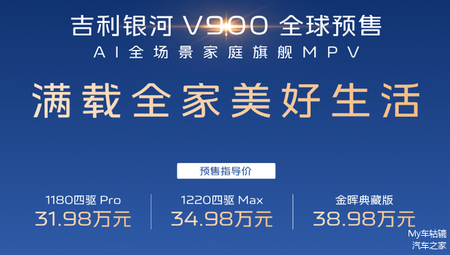 进入2026年,吉利银河带来的首款产品便是银河V900。1月7日,吉利银河V900开启预售,共发布三款车型,预售价31.98-38.98万。