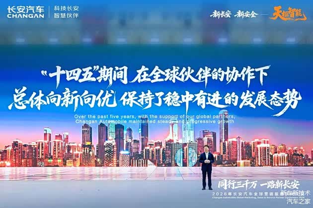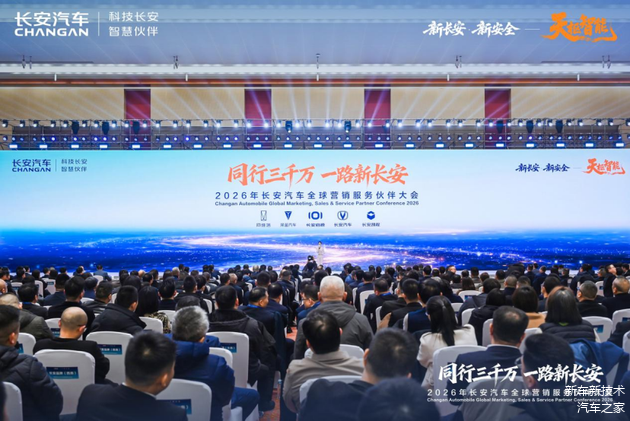 2026年1月5日,山城重庆,以“同行三千万,一路新长安”为主题,2026年长安汽车全球营销服务伙伴大会在悦来国际会议中心拉开帷幕。这并非一次寻常的年终聚会,而是在中国长安汽车集团全新启航、中国品牌汽车产销突破3000万辆两大历史性节点之后,首次面向全球合作伙伴的深度集结与战略共振。