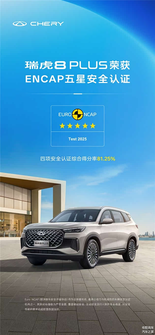 瑞虎8 PLUS荣获ENCAP五星安全认证