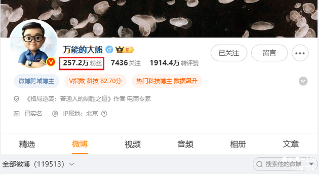 大熊的微博粉丝有257.2万,网络影响力颇大。经常被这样的大V黑,小米也很头疼。