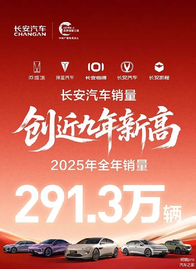 长安汽车2025年整体表现,其实还是比较亮眼的。2025年,长安汽车全年销量达291.30万辆,同比增长8.5%,完成了300万辆的年度目标的97.1%;全口径汇总营业收入约2860亿元,完成了3000亿元目标的95.33%。虽然这两项核心指标未完全达成,但是均创造了历史新高。