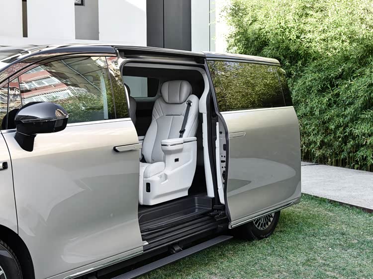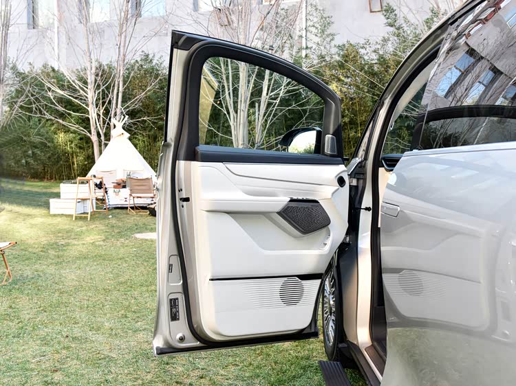 车身侧面采用平直线条,悬浮式车顶与镀铬装饰更多起到视觉分割作用,而非造型堆叠。电动踏板的加入,对于老人和儿童上下车更为友好。尾部贯穿式尾灯形成X造型,同时将辅助驾驶状态灯融入其中,在夜间行驶中具有较高辨识度。这些设计并非单纯造型展示,而是服务于日常使用场景。