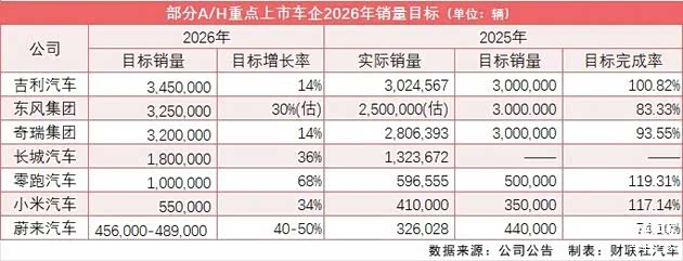 说实话车卖家以为今年也就是2026年各家车企会把销量目标定的保守一些,毕竟市场环境今年比去年更激烈,并且今年的补贴政策实际上不如去年大,所以各家车企定销量目标应该保守一些,但是实际上并不是,目前很多车企已经公布的2026年销量目标,有的车企定的真的很高!