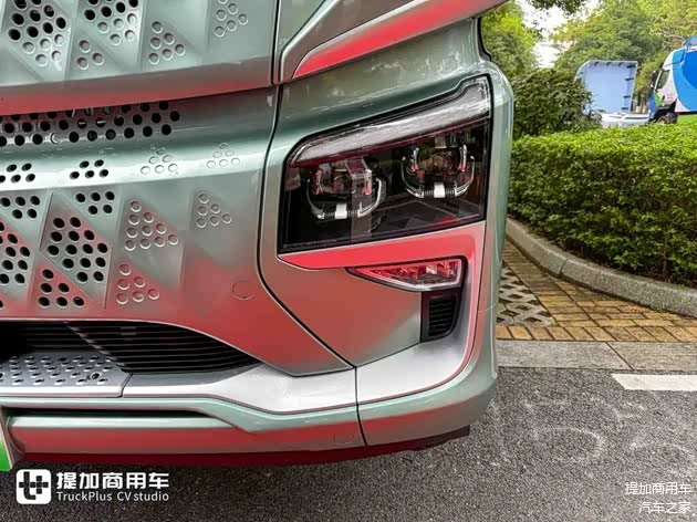 作为乘龙旗下的高端重卡产品,H5V在外观设计上极具辨识度。整车线条以圆润风格为主导,塑造出柔美流畅的视觉感受。导流包角、保险杠等细节经过精心雕琢,呈现出不俗的工艺质感。前脸采用“涟漪”式格栅设计,近乎封闭的造型不仅与整车柔和语言相协调,也显著提升了科技感,在国产重卡中形成独特设计风格。