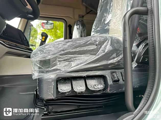 座椅采用气囊减震系统,阻尼、高度、倾角等规格均可调节,加之增强的腰部和臀部支撑,让不同身材的驾驶员都能找到适合自己的坐姿。在此基础上,车辆座椅采用双拼面料,并设计缝线,豪华度和舒适度都有所保证。