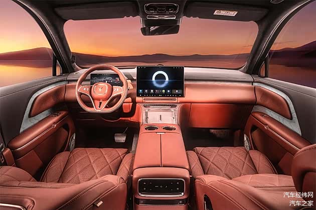 内饰方面,岚图泰山大量运用可持续环保材料与高品质皮革,中控台的一体式三联屏设计科技感十足营造出传统豪华与现代科技交融的氛围。