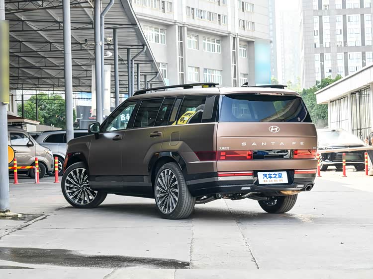 外观方面,新车延续第五代胜达的硬朗“方盒子”造型,整车以棱角分明的线条勾勒轮廓,辨识度拉满。前脸配备H型日间行车灯,搭配1.624米贯穿式灯带,夜间点亮后科技感十足,前牌照框上方搭载主动开闭前格栅,可根据行驶工况智能调节开合度,兼顾空气动力学性能与发动机散热需求。车身侧面采用悬浮式车顶设计,搭配黑色车顶行李架,兼顾装饰性与实用性。车尾采用低位尾灯组搭配黑色贯穿装饰,后雨刷器隐藏在后尾翼下方,搭配单边单出排气布局,整体风格沉稳大气。