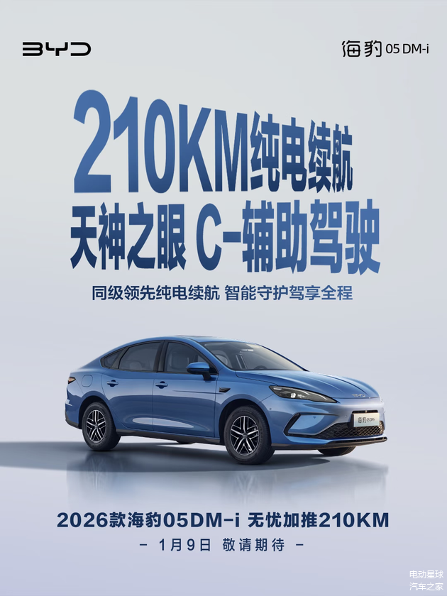 今天,比亚迪发布预热海报,显示将针对秦 PLUS DM-i、秦 L DM-i、海豹 05 DM-i、海豹 06 DM-i 四款车型,加推纯电续航 210km、综合续航 2110km 的大电池版本。