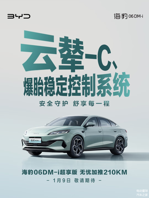 海豹 06 DM-i 长续航版则将搭载云辇-C 底盘、爆胎稳定控制系统、冷暖两用冰箱、15.6 英寸中控屏等配置。