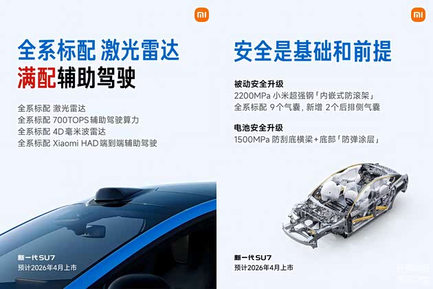 - 针对性“补课”:针对此前几起备受关注的安全事故,小米此次升级重点放在了“看不见的地方”。新车配备了车门锁专用备份电源系统、嵌入式防翻滚架,并全系标配激光雷达(LiDAR)。