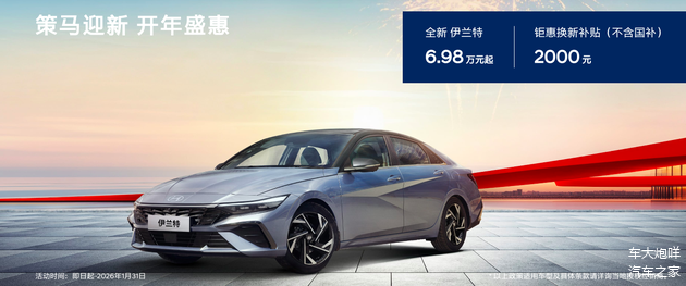 日前,笔者从北京现代官方获悉,现代伊兰特系列限时售价6.98万元起,并且可享换新补贴(不含国补)2000元,优惠活动截止至2026年1月31日。作为参考,在售现代伊兰特官方指导价格区间为9.98万-14.98万元。