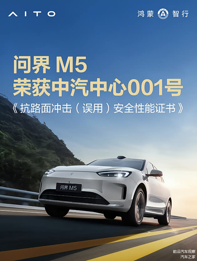 品牌口碑层面的多项第一,不仅奠定了问界在高端新能源赛道的引领地位,更成为旗下产品持续热销的坚实背书。问界M5系列上市以来,不仅累计交付突破16万,更凭借硬核产品力脱颖而出,成为行业首个摘得中汽中心“抗路面冲击(误用)安全性能5A级认证”的车型,用实打实的产品荣誉,为品牌口碑添砖加瓦。