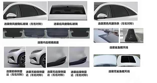 根据提供的申报资料,这款新车除了被命名为秦MAX之外,还提供了大秦和秦Ultra这两个备选名字。此外,该产品还提供了一系列多样化的可选配置选项,包括轮辋、全景天幕和侧风窗隐私玻璃等,以满足各种消费者的个性化需求。