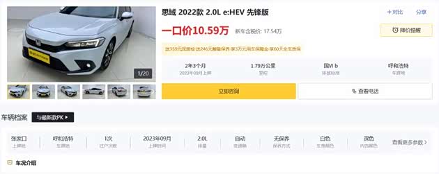 10万级均衡之选:本田思域(2022款 2.0L e:HEV先锋版)