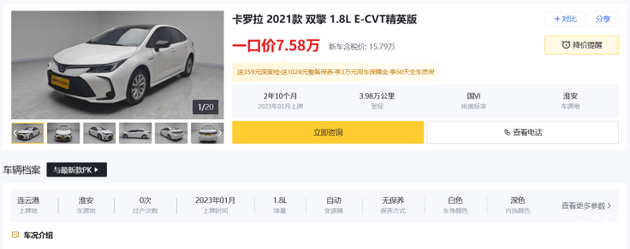 7万级省油之选: 丰田卡罗拉双擎(2021款双擎 1.8L E-CVT精英版)