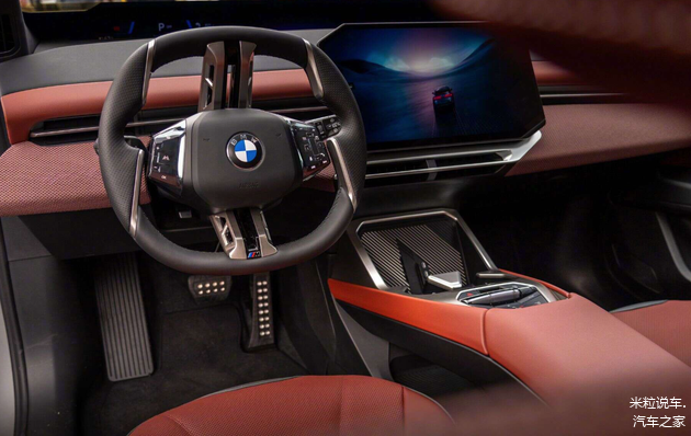 内饰设计也是首次进行了公布,整个内饰布局与概念车是完全一致的,采用了不规则样式的悬浮中控大屏设计,尺寸达到了16英寸。而全新一代的四幅上下平底多功能运动方向盘也是首次出现,方向盘上采用了大量的金属加以装饰,确实具备了超强的战斗感,令人肾上腺素飙升。除了中控大屏以外,还在前挡风玻璃附近采用了贯穿式的联屏设计,虽然尺寸偏窄,但是非常富有科技感。