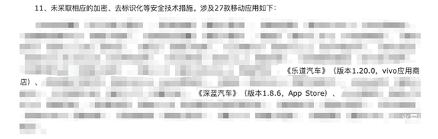 经检测发现,《乐道汽车》(版本1.20.0)27款移动应用因未采取相应的加密、去标识化等安全技术措施被通报。