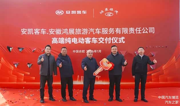 共筑绿色运力,助推客运升级!2026年1月6日,批量安凯N12E与N11E纯电动客车,正式加入安徽鸿展旅游汽车服务有限责任公司(以下简称“安徽鸿展”)的运营矩阵。此次交付既是双方多年合作的崭新篇章,也是绿色出行理念的深度践行。这批高品质新能源客车,将助力安徽鸿展提升服务能级、开拓市场新境,也为区域旅游客运绿色转型注入强劲动力。