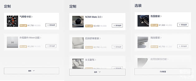 剩下的选配全线半价,气辉橙卡钳、Moon主题外观套件、薄藤紫内饰等都能低价升级,花更少的钱,就能给生活多添一份品质感。