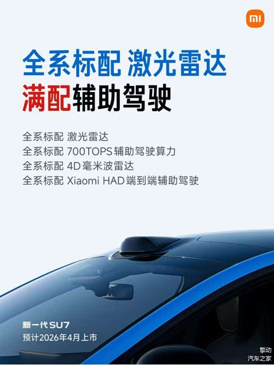 新一代小米SU7在这个节骨点涨价,虽说配置也跟着提高,但别忘了小米汽车入市之初便以“颠覆”闻名,全系标配激光雷达放在两年前确实能“颠覆”消费者的认知,但在2026年已经变成“本该如此”了。