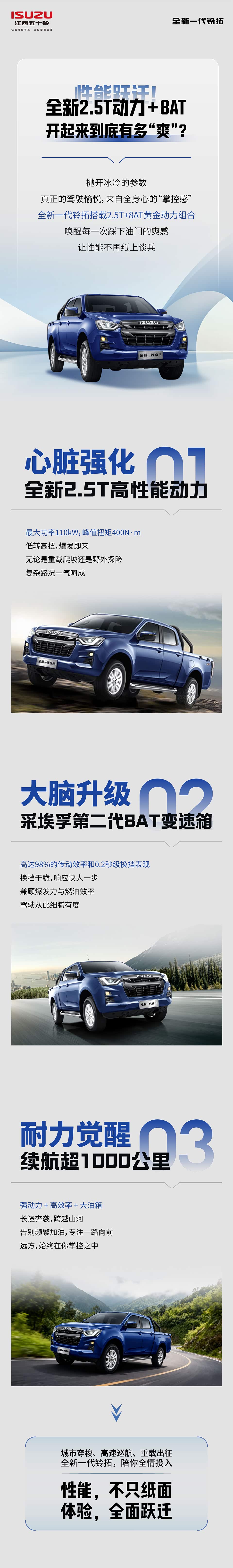 抛开冰冷的参数 真正的驾驶愉悦,来自全身心的“掌控感” 全新一代铃拓搭载2.5T+8AT黄金动力组合 唤醒每一次踩下油门的爽感 让性能不再纸上谈兵 #江西五十铃#全新一代铃拓