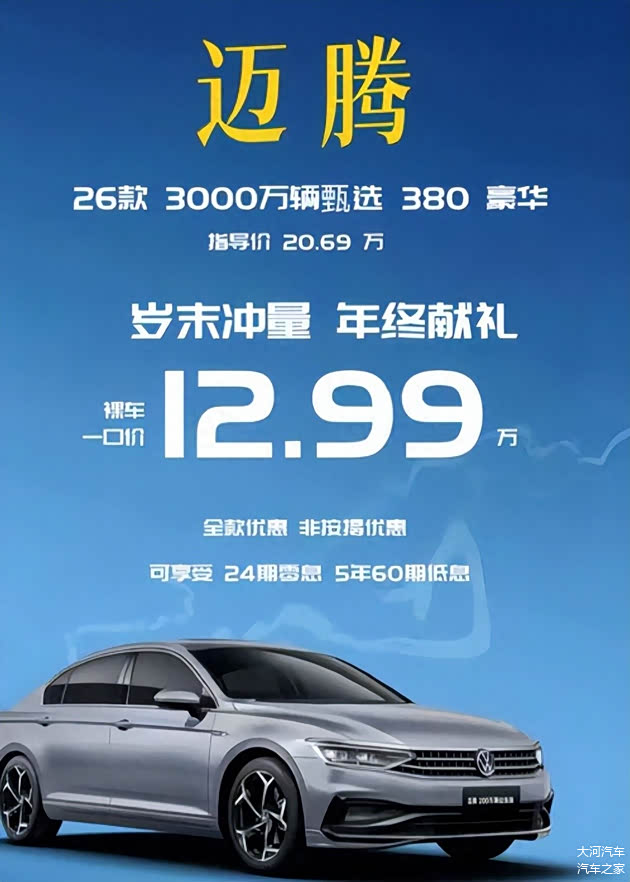 近日,一张“2.0T大众新 迈腾裸车一口价12.99万元”的截图在网络上疯传,让不少持币待购的消费者心头一热。要知道,这款车指导价超过20万元,如果真能以这个价格拿下,简直是“捡到宝”。然而,这个价格究竟是真是假?记者实地探访河南一汽-大众4S店,为消费者揭开真相。