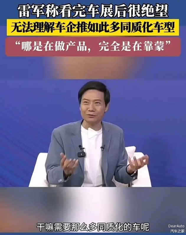 此前,雷军非常不屑这一招。2024年的北京车展,成了最大流量主的雷军表示,自己很难理解为何车企要做如此多的同质化车型,“好的车有几辆就行了,干嘛需要那么多同质化的车?车圈的卷,完全是同质化的卷。”雷军甚至表示在走访完车展后自己很“绝望”:“这哪是在做产品,完全是在靠蒙。”
