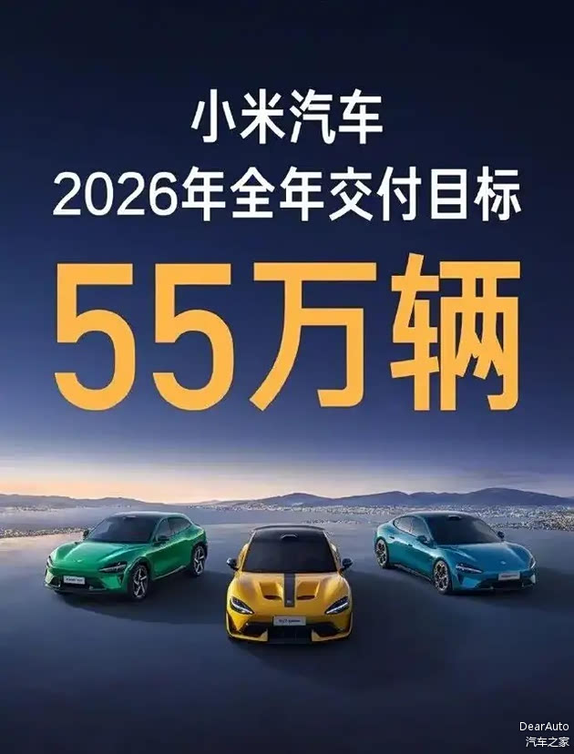 我们再进一步分析,55万辆几乎是与2025年的41万辆持平,因为在世道不好的12月份小米的销量已经突破5万辆,按这么算下来,今年仅凭现有的两款车型SU7和YU7就可以达到60万辆,这还没算上今年新推出的三款全新车型,包括YU9。