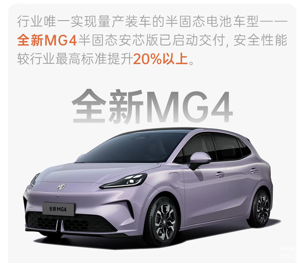 DMH混动专用发动机热效率突破46.3%,“恒星超级增程”纯电续航达450km,行业首创“主/被动一体”安全系统,第二代数字底盘实现精准控制,半固态电池率先在MG4上实现量产上市。