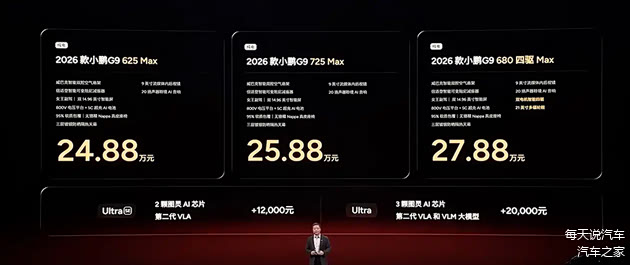 1月8日,小鹏汽车旗下的SUV双子星— 2026款 小鹏G6和小鹏G9联袂上市。小鹏G6推出2款车型,售价区间为17.68-18.68万元;小鹏G9共推出3款车型,售价区间为24.88-27.88万元。两车均为年度改款车型,重点是对车机芯片等智能配置进行了升级。