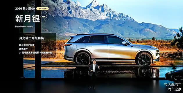 2026款小鹏G9同样是在细节上进行了升级。具体来看,新增了“新月哑光银”的外观配色,延续了三段式组成的贯穿星环式灯带+封闭式前格栅,以及窄条幅式进气口的组合型设计。