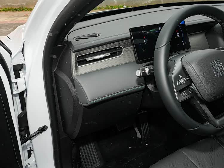 内饰方面,2026款秦PLUS DM-i基本延续了此前改款后的设计方案。中控台布局以实用为主,整体结构简洁,操作逻辑清晰。怀挡式换挡机构的保留,使得中控区域释放出更多储物空间,日常放置随身物品更加便利。副仪表台造型相比早期版本更为简约,减少了复杂装饰元素,更符合家用车对耐用性与易清洁性的需求。整体内饰并未追求过度设计,而是围绕实际使用频率进行取舍。