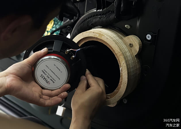 中低音喇叭同样原位安装于前车门板。为了克服原安装位深度不足的限制,获得更沉稳、干净的中低频响应,定制了专用木垫圈,以增加安装深度和密封性,为整个音响系统打下了坚实而宽松的中低频根基。