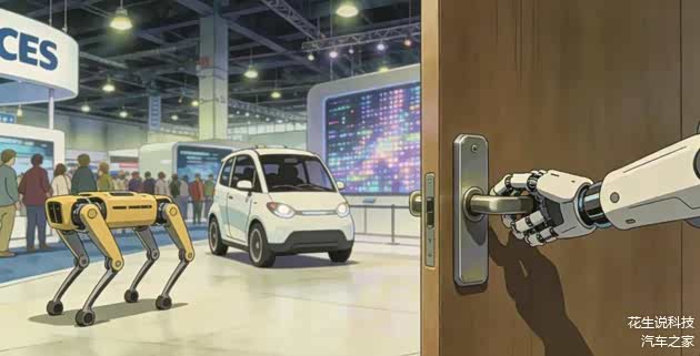 馆内,自动驾驶技术,都实现了无人化闭环:Waymo、特斯拉 FSD 在展馆间穿梭不息,车辆完全可以不需要司机;波士顿动力已经把机器人用在了工厂里,运货的是无人车、生产的是机械手,机器人的手甚至能自己扭开门把手——现场我还听到了开门音效,仿佛开的不是演示的门,而是未来的门!