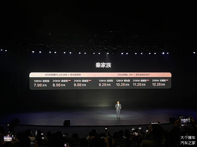 2026年1月8日,比亚迪公布了其2026款秦L DM-i 210km长续航版的正式发布。这款新车的显著特点是电池容量和纯电续航,配备了25.28度的电池,使得CLTC的纯电续航达到了210公里。此次推出的这款长航能产品是比亚迪在新能源汽车领域取得重大突破后发布的首款产品,也是目前市场上唯一一款具备长续航能力的纯电动车型。2026款秦L DM-i 210km长续航版总共推出了两种不同的车型。其中,官方定价范围是11.68万至12.68万元,权益定价在11.28万至12.28万元之间。而128km版本的售价则是9.68万至10.68万元,权益价则在9.28万至10.28万元之间。