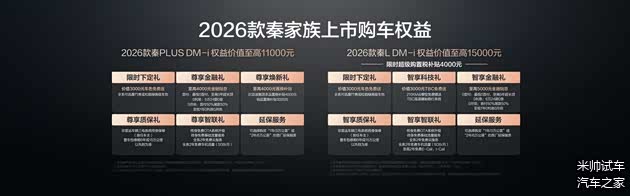 1月8日,比亚迪秦家族迎来重磅加推,2026款秦L DM-i/2026款秦PLUS DM-i 210KM长续航版双车同步上市,售价8.98-12.28万元。其中,2026款秦L DM-i 210KM长续航版限时超级优享价11.28-12.28万元,2026款秦PLUS DM-i 210KM长续航版售价8.98-9.98万元。同时,两款车型均带来了丰厚的上市权益礼。