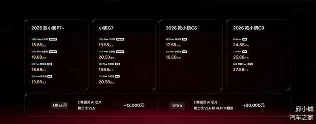 2026年开年车市有大事要发生!1月8日,小鹏汽车全球新品发布会携四款新车强势登场,18.68万起的定价击穿行业底价,更将L4级智能驾驶、1550km超长续航等尖端配置下放至主流市场。从全球同步发售的P7+到满配家庭SUV G7超级增程,小鹏以“科技平权”理念重构细分市场格局,这场发布会不仅是产品盛宴,更是中国智能汽车迈向全球的宣言。